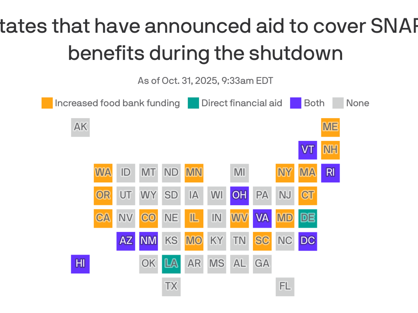 The U.S. Department of Agriculture warned that Supplemental Nutrition Assistance Program (SNAP) benefits could be suspended starting November 1 unless Congress passes a funding bill to end the federal government shutdown, which began on October 1. The agency stated that approximately 42 million food stamp recipients—receiving an average monthly benefit of $190 per person or $356 per household—may face interruptions in assistance.