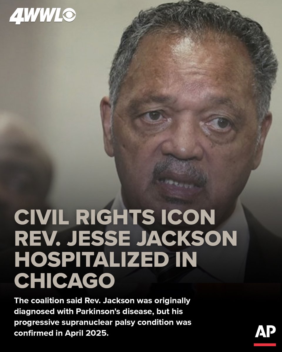 The Rev. Jesse Jackson, a veteran liberal activist and one-time Democratic presidential contender, has been hospitalized with a rare neurological disorder. The 84-year-old is under observation in a Chicago hospital for progressive supranuclear palsy, according to the Rainbow Push Coalition.